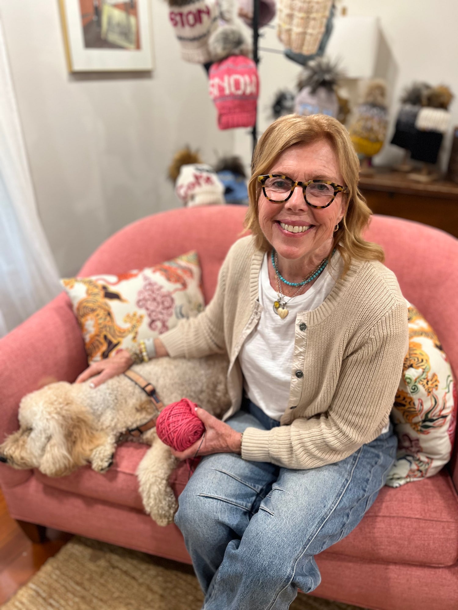 You can almost always find me with a Sandy Knits project in progress - whether that is at home in Beverly Farms, Massachusetts or when I am out and about. Each hat is crafted using only the finest, most luxuriously soft yarns. The name Sandy Knits was inspired by my mini Goldendoodle, Sandy, who is my ever-present knitting pal.